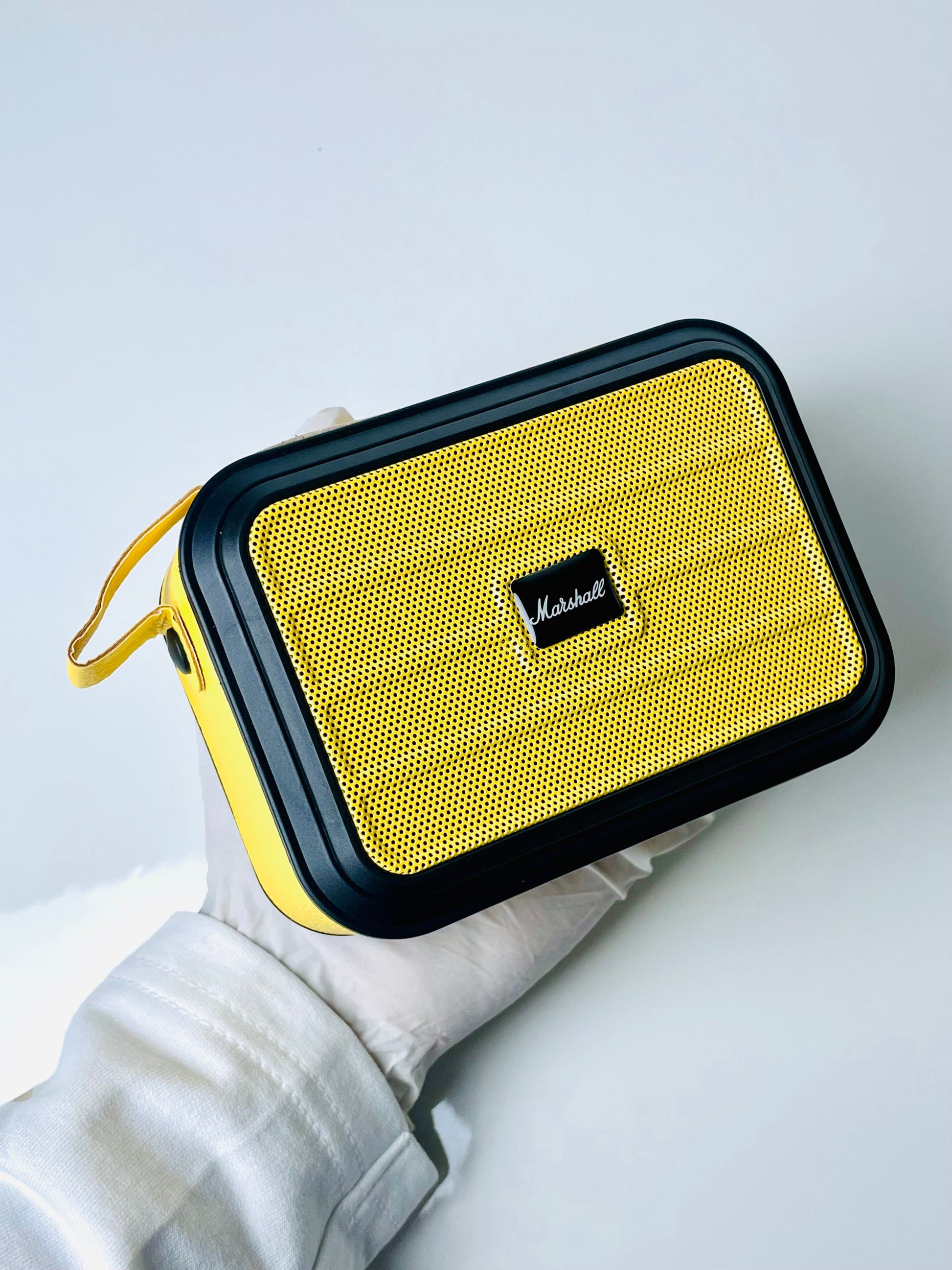 The Marshall Action III is a compact yet powerful Bluetooth speaker that embodies the classic rock-and-roll spirit of the Marshall brand. Combining vintage design with modern sound engineering, it delivers rich, room-filling audio in a timeless package. The textured vinyl exterior, brass control knobs, and iconic script logo evoke the look of Marshall’s legendary amplifiers, while inside, precision-tuned components ensure a dynamic and balanced sound experience.